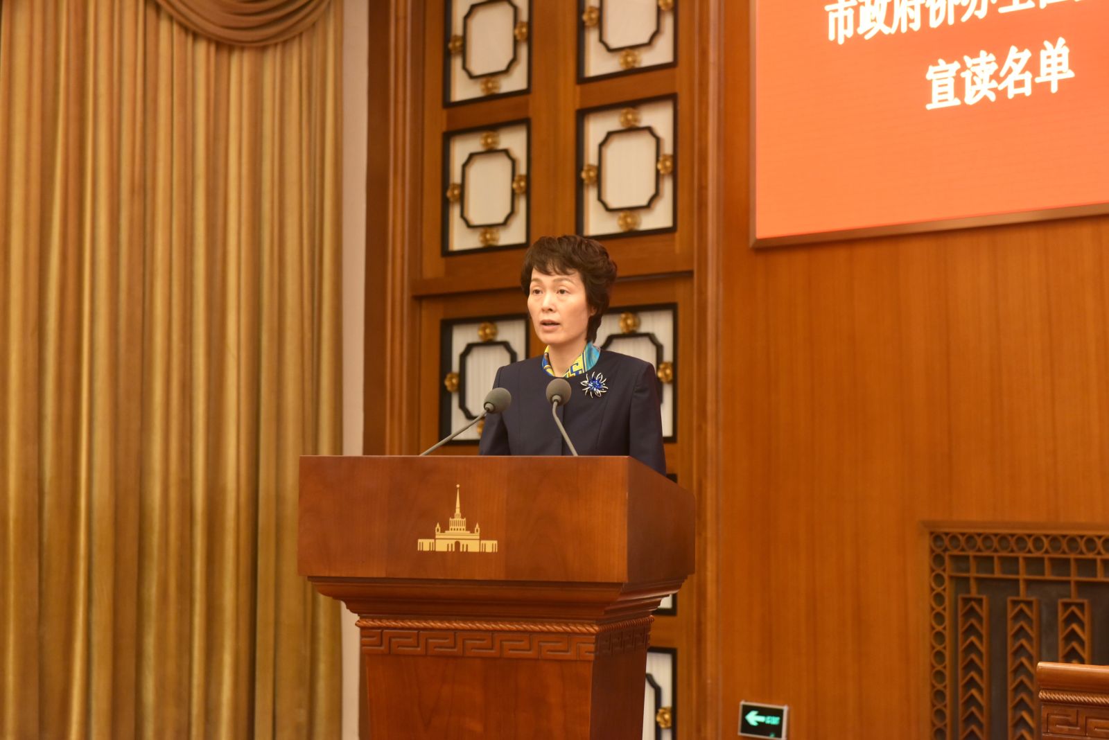 董依雯宣读上海中华职业教育社第七届社务委员会主任、副主任和常务委员名单。