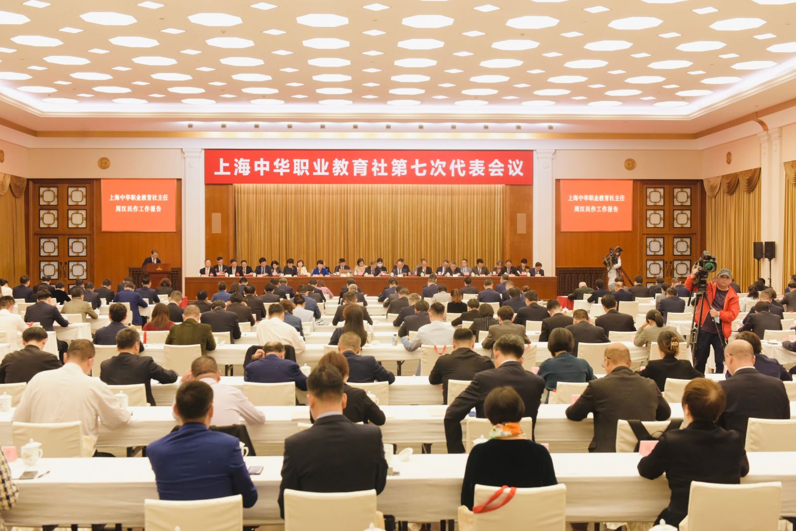 10月13日,上海中华职业教育社第七次代表会议召开。全国人大常委会副委员长、民建中央主席、中华职业教育社理事长郝明金,市委常委、统战部部长陈通出席会议并讲话。