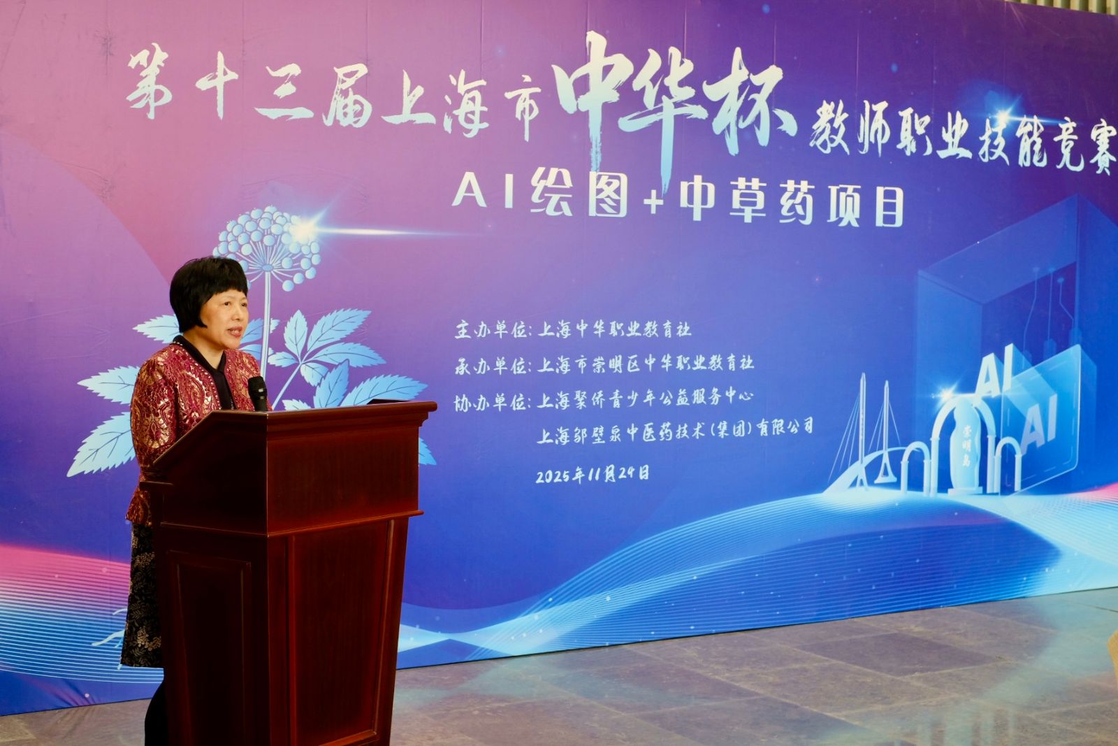 在开赛仪式上,崇明中华职业教育社主任施志琴表示,“AI绘图+中草药”赛项是响应“科技强国”与“健康中国”双国家战略的生动实践,并强调赛事对推动中医药文化创新传承的重要意义。