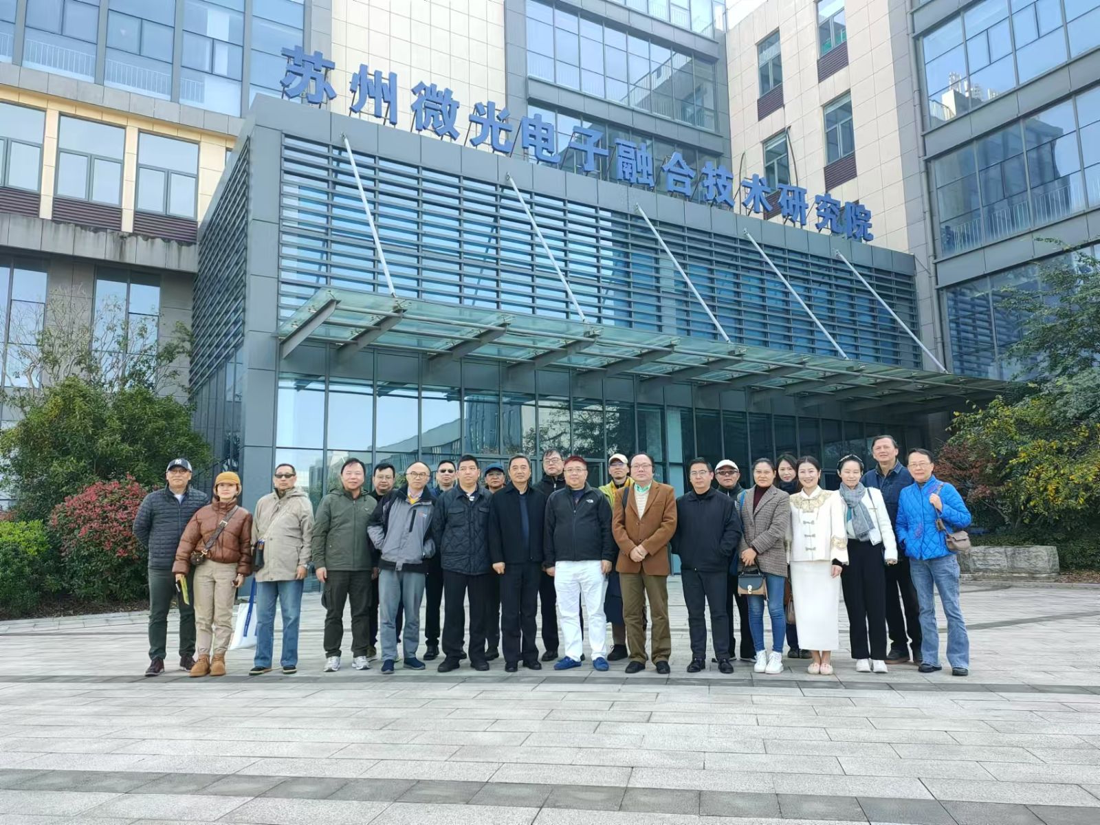 为贯彻党的二十届三中全会精神,认真学习习近平总书记关于职业教育和长三角一体化发展重要讲话重要批示指示,强化政治引领,感受长三角一体化示范区的新发展面貌,助力新质生产力推动企业高质量发展,推动实施产教融合,更好服务社员企业,按照市社要求和相关工作安排,市社一工委会同长三角合作专委会于11月26日举办赴苏州吴江汾湖高新区考察学习活动。市社一工委主任、长三角合作专委会主任何皓东,市社教育发展部副部长王黎明、金山区社区学院院长毕玉龙等两委部分社员委员参加活动。苏州微光电子融合技术研究院董事长黄北举和安信伟光总裁卢奕开等陪同考察。