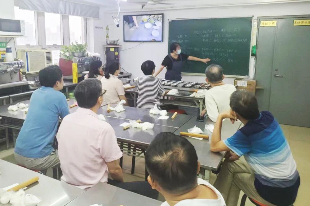 活动现场热闹非凡,主办方提前准备好了肉馅、苔条馅两种经典月饼品类的食材。专业培训老师率先登场教学,不仅细致展示了用低精粉、中精粉、猪油等材料进行和面、包馅的完整流程,还手把手指导了“如何把面和得更细腻更劲道”等实用技巧,耐心讲解每一个制作步骤,确保在场的每位社员都能听明白、学上手。