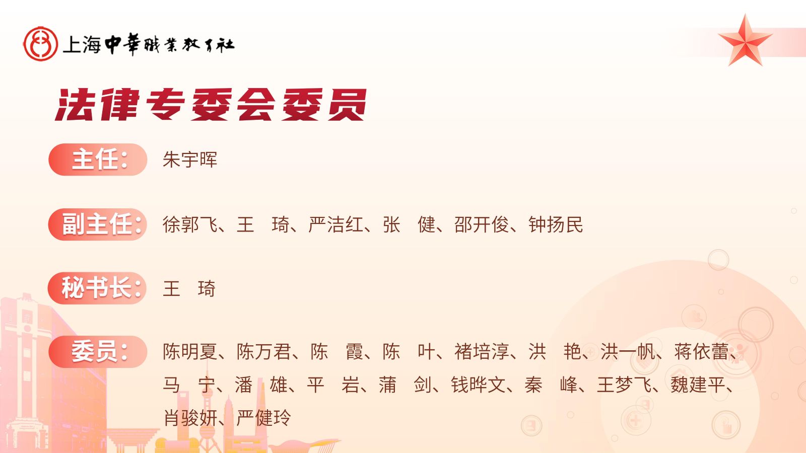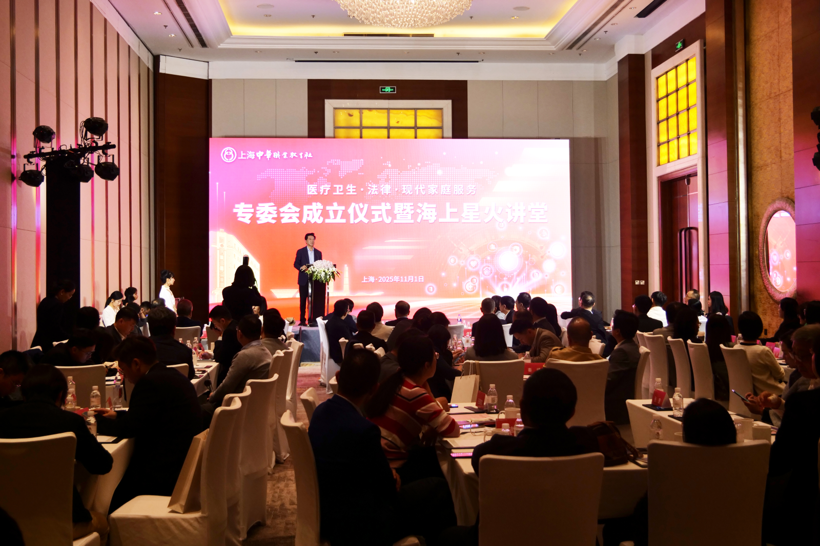 11月1日下午,上海中华职业教育社举行第七届社务委员会医疗卫生、法律、现代家庭服务专门委员会成立仪式暨第一期《海上星火讲堂》活动。市职教社常务副主任、市政府参事胡卫出席并讲话。市职教社副主任、浦东新区人大常委会副主任李国华,市职教社副主任、上海克而瑞信息技术有限公司董事长丁祖昱出席活动。