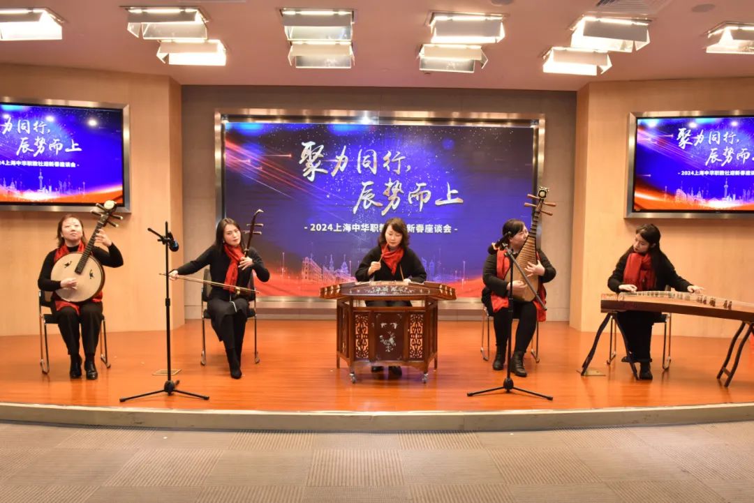 座谈会分“迎春纳福”与“携手奋进”两个板块,第二板块由市社毕鹏宇、青浦社孙云立主持。由市区各级组织精心准备的文艺节目穿插其中。由浦东社选送,浦东青少年活动中心老师们演奏的民乐《喜洋洋》;由一工委、虹口社选送,柴天宇、朱建芳演唱的《不忘初心》;由中青委选送,周吉天及其小学员带来的国标舞表演;由宝山社选送,唐丹、月浦飞扬舞蹈队表演的京歌《梨花颂》;大家以各种表现形式喜迎新春,凝聚力量,憧憬未来。社员中的书法爱好者现场挥毫泼墨书写福字,让大家“带福回家”。