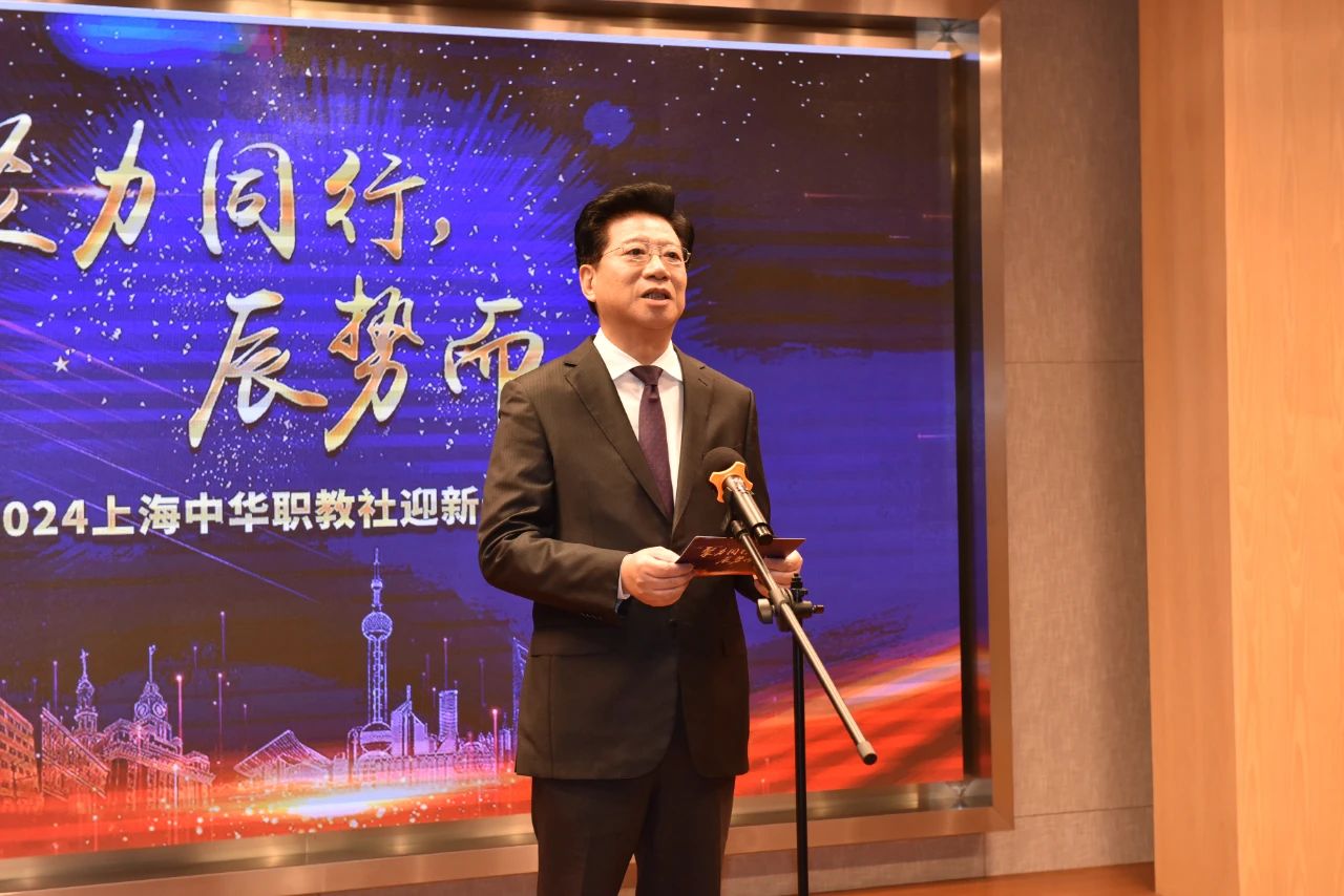 天地春晖近,日月开新元。2月5日,上海中华职教社在市民主党派大厦六楼第一会议室举行迎新春座谈会。上海市副市长、市职教社主任解冬出席并致辞。全国政协常委、市职教社原主任周汉民,市政府副秘书长王平,市职教社副主任李国华、毛丽娟、丁光宏、孙真荣、叶才福、丁祖昱等领导出席活动。市职教社常务副主任、市政府参事胡卫主持活动。