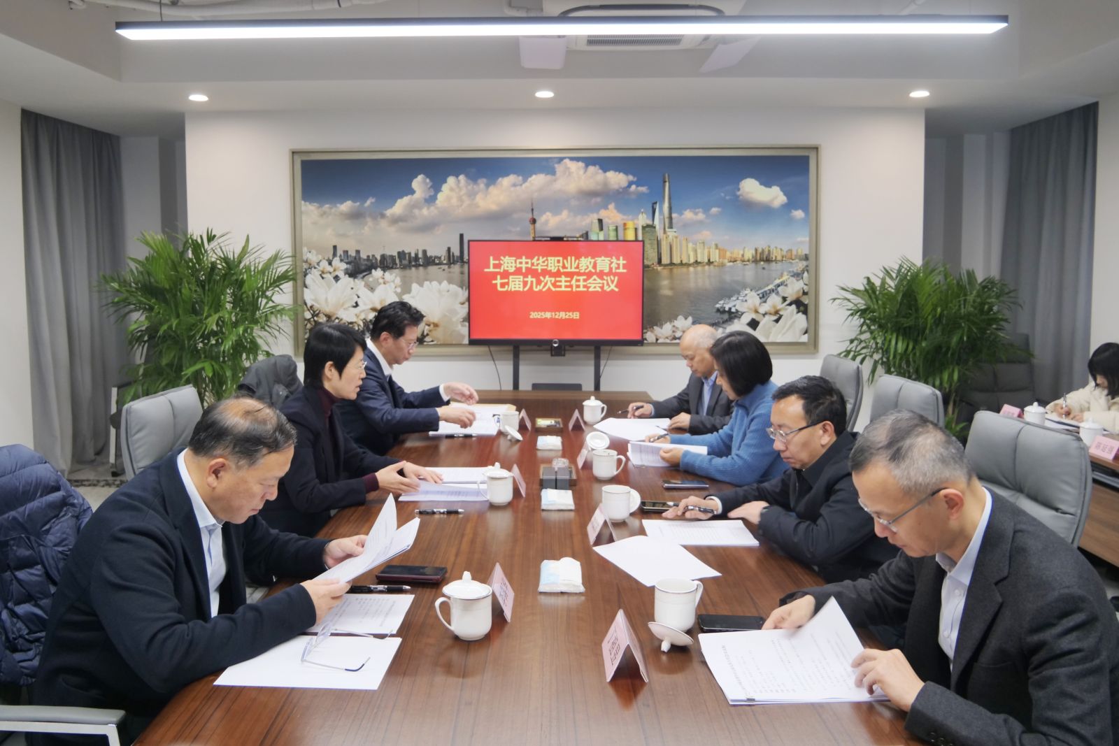 12月25日上午,上海中华职教社召开第七届社务委员会第五次会议,上海市副市长、市职教社主任解冬主持会议。市职教社常务副主任胡卫,副主任李国华、毛丽娟、谭友林、叶才福、丁祖昱,常务委员王淳、胡开颜、周新钢、王维出席会议。