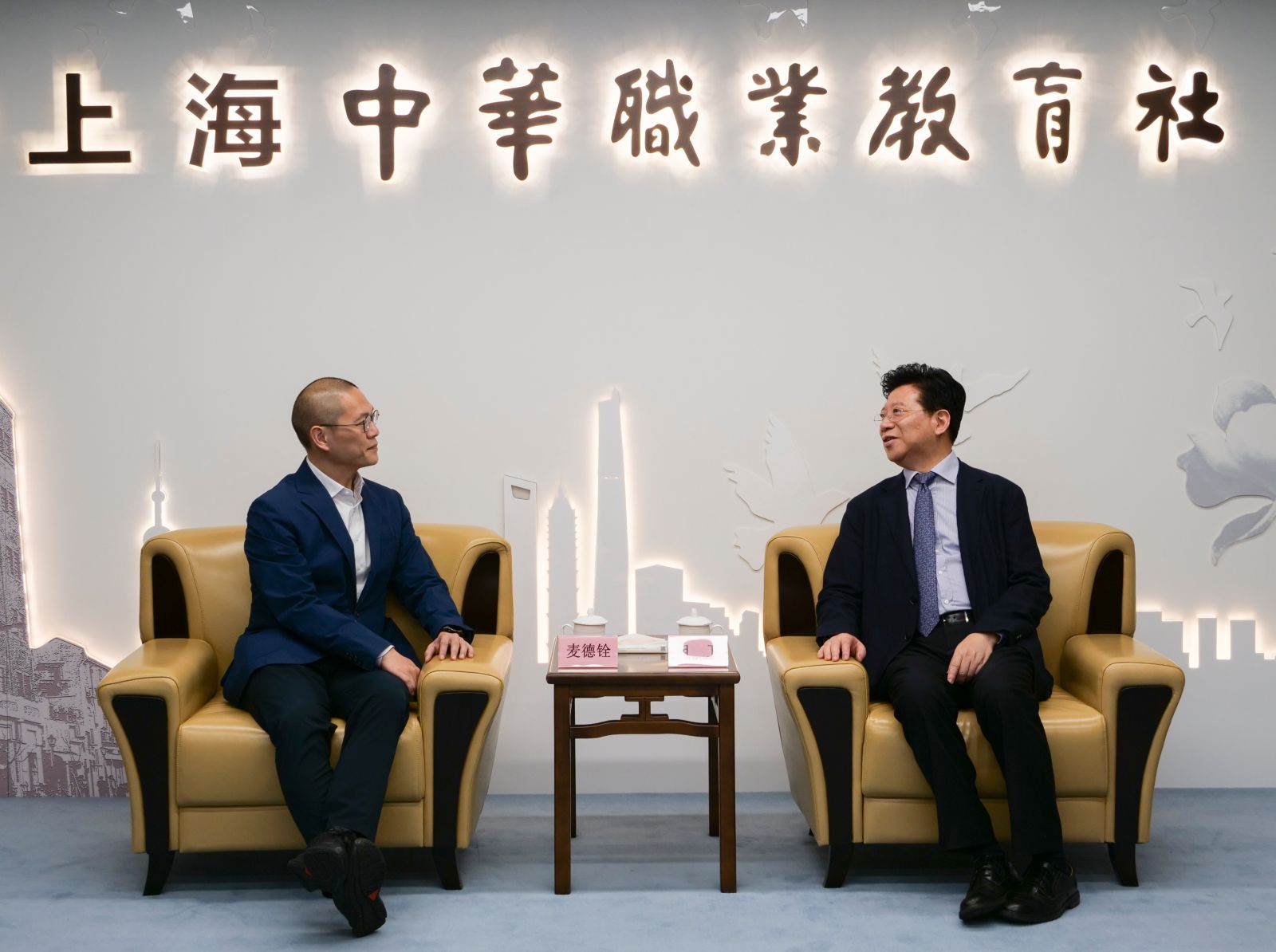 会见前,麦德铨一行还参观了社史展示厅。徐汇区政协委员、泰宁学建教育集团副总裁岑丽,市职教社办公室负责人等参加会见。