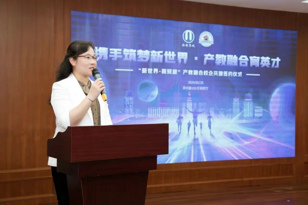 新世界股份党委副书记、副董事长、总经理沈为民表示校企合作需要以双赢为基础,不断延伸教育链、服务产业链、支撑供应链、打造人才链、提升价值链。商贸旅游学校精致化办学、匠心育人的成效,在众多出色的毕业生和优秀在校学生身上都有了具体的体现,更加强了企业对合作的信心。期待校企双方通过共享优质资源,协同创新,创设双向发展机制,促进新质生产力发展。