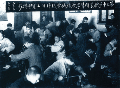 中华职业补习学校注重书本知识和动手实践的结合。图为机电科学生在实习(20世纪30年代)